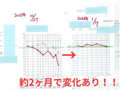 聴力検査の結果でもはっきりとわかるほど、聴力は大きく回復しています。