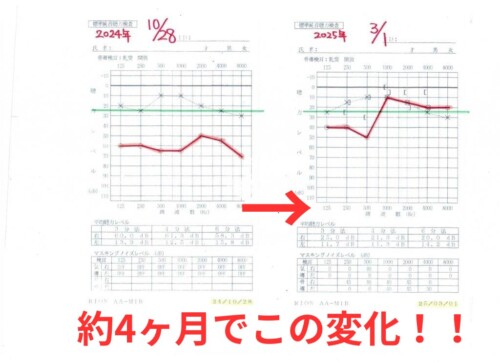 鍼施術を重ねることで、聴力は大きく回復しています。