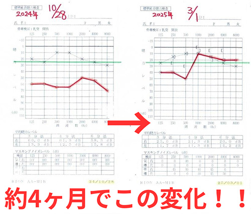 鍼を始めた事で、聴力検査でかなり回復してきているのが分かる。