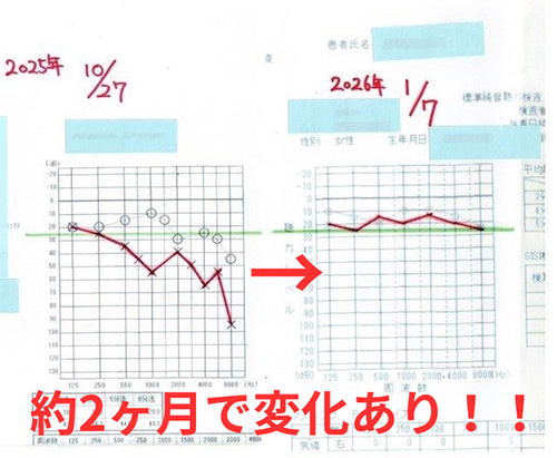 初診の時から約3ヶ月、全体的に聴力の回復が顕著にみられ改善している。